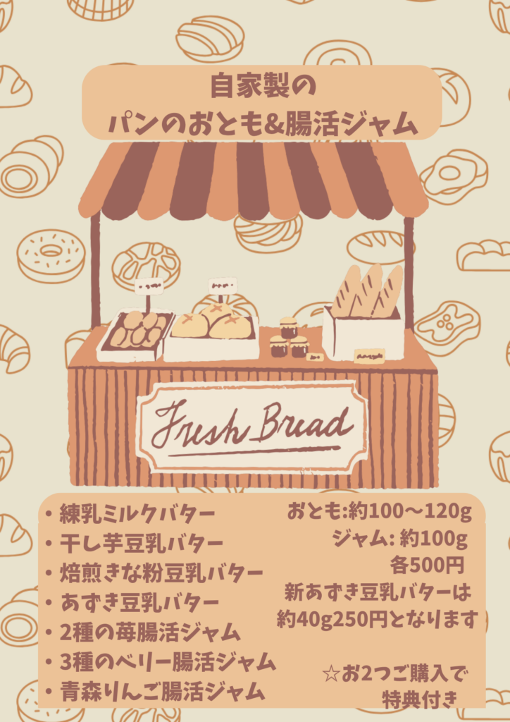 砂糖は主にキビ糖やはちみつを使い、塩は厳選した岩塩を使用しています。乳酸菌を配合したパンなどもご用意しています。